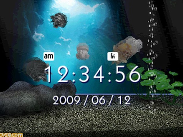 Let’s Clock will offer a selection of multiple different screens, seemingly with a general underwater theme. You can view all the screens offered up on Famitsu below.