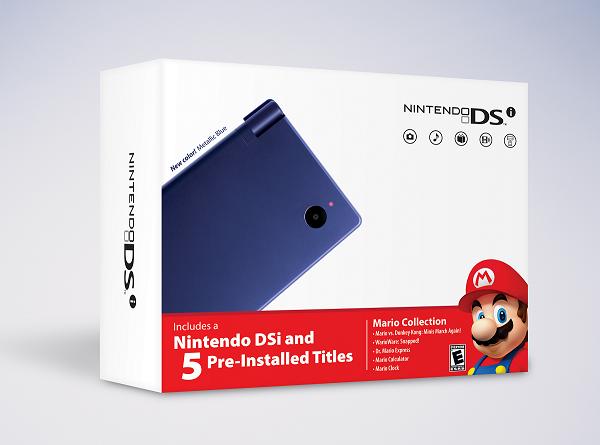 The first is a limited edition metallic blue DSi, which comes preloaded with Mario VS Donkey Kong: Minis March Again, Dr. Mario Express, Warioware: Snapped, the Mario Calculator, and Mario Clock.